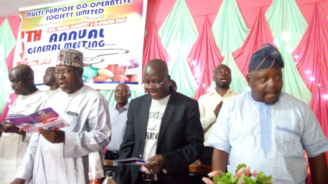 and educate members on how to carry out their day to day activities of the society for the growth and development of both the organization and its members.”Our member’s ordinary savings during the period under review stands at; Ordinary savings, 2018 234,750‚263 and 220,630‚843 , while Special savings are 2,617‚021 and 3,265‚400, for 2017 and 2018 respectively.”Our audited accounts for the year end 2018 indicate that we made a surplus income over expenditure of N12‚288‚363 respectively.Speaking on the topic, “Financial Management And Cooperstive Ethics, the guest Speaker, Emmanuel Rit Jan states the need for increased savings and investment, rather than indulging in excess spending of incomes.For Cooperatives to be Financial Discipline, Earn Income, DO not spend all income, earn and invest your savings in acquiring assets, produce products or services that meet the need of others and do not over borrowed.” The size of your income is no excuse, check your lifestyle, take control, forego pleasure and other cheep desires, take caution and come out with and action plan for your financial discipline”.On his Part, the acting Chief Medical Ditrctor, Plateau State Specialist Hospital, Dr. Philimon Edwa commended the leadership and members of the cooperative for forming the cooperative and encourage staff of the hospital who have not joined the society to do so for their own interest.He said cooperative is key to human capital development, which according to him, it is in realization if the important of savings that government has keyed into contributory schemes which is synanimous to cooperatives investments.He promises the determination of his administration:s desire to take the hospital to greatness by ensuring that roads within the hospitals are tard, as well as decaying infrastructures within the hospital are fixed up.