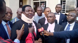 (Sen. Jang’s Legal Team, headed by Chief Mike Ozekhome (SAN) briefing Press.