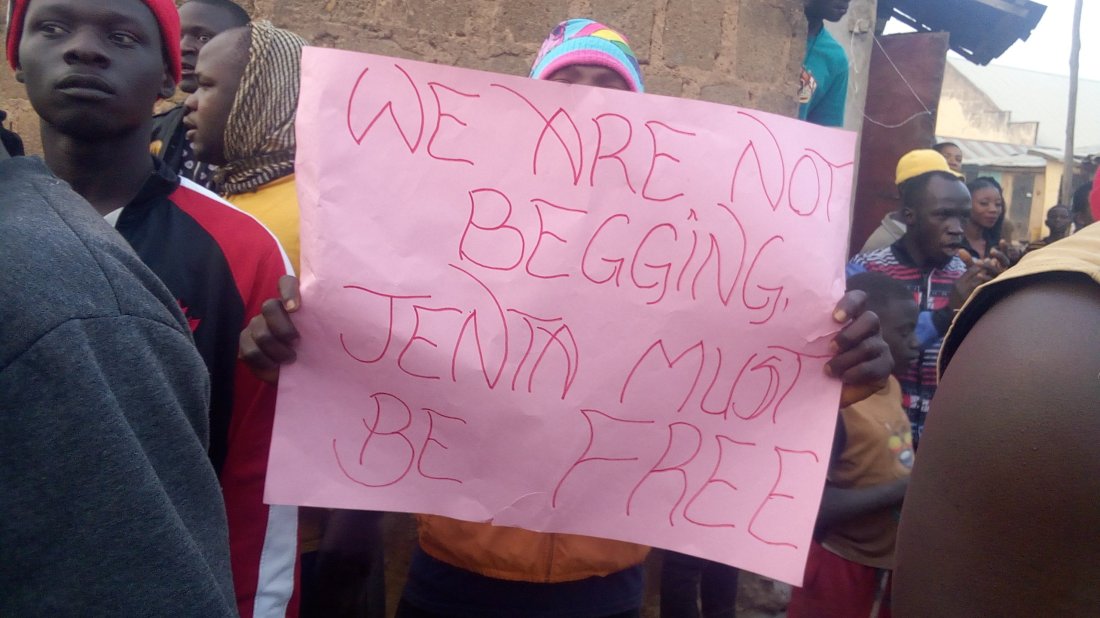 The protesting youths had also in their possession some placards, with inscriptions, “We Are Not Begging, Jenta Must Be free!, No To Cultism, among others, and along the way they burning tires, chatting war songs sending signals that they were prepared to crush whoever might stand on their way, but no body came out to challenge them.