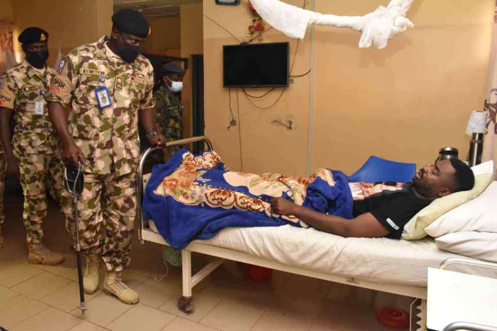 The General Officer Commanding (GOC) 3 Division Nigerian Army and Commander Operation Safe Haven (OPSH) Jos, Major General Ibrahim Sallau Ali has today 28 July visited wounded personnel of OPSH at the Air Force Military Hospital Jos. A statement by Major ISHAKU GAJI TAKWA, the